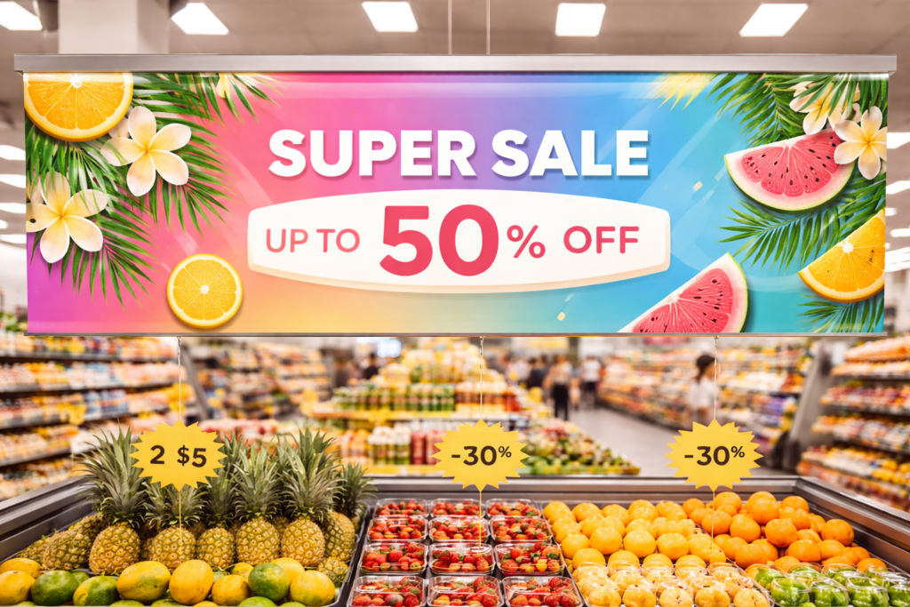 Impresión de alto impacto visual para exteriores, puntos de venta y espacios arquitectónicos.